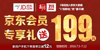 1号店联手京东送优惠券,领取199元优惠券礼包(含满12-12券)!1号店目前放出了一波199元优惠券礼包,点击领券,输入手机号码,验证之后即可到账,其中包括自营满12-12券,满188-15、满288-35、满888-50券等等。用券方式:使用该券手机号前往1号店注册,成功后在1号店个人中心“我的抵用券”中查看该券,PC和无线APP通用,需要在领取后的30天内使用,活动时间为:2016年7月5日至2016年7月12日。
