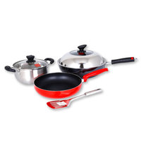 炊大皇KA45379好家福四件套,不粘锅,清洗方便,胶木手柄,隔热防烫,握感舒适,铆钉设计,牢固耐用,高强度复合底,电磁炉适用。