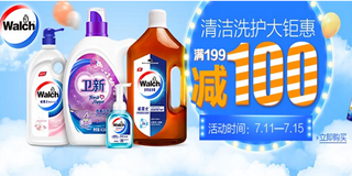 亚马逊清洁洗护大钜惠,威露士专场,满199-100元!亚马逊中国一年一度的亚马逊会员日来临,威露士精选产品下单满199元减100元,凡购买本页面内指定产品,享下单满199元减100元优惠!领取下方优惠券或者在结账时输入下列优惠码CJH3EQ25TJMT,在终结账时会减免优惠金额。多款单品属于好价,活动从2016年07月11日10:00:00开始至2016年07月15日23:59:59截至。有需要的朋友可以到活动页面挑选