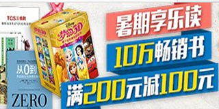 亚马逊10万畅销书促销专场,满200-100元!亚马逊中国图书活动一个接一个,继上次的200-80后,升级为200-100的优惠力度。自本日9点到7月24日结束,自营10万图书享受满200元减100,活动期间内,在本页面领取优惠券后,购买指定自营图书(不含电子书、第三方卖家商品、Z、Z实惠、镇店之宝、海外购或订购省商品),单笔订单满200元,在结账时系统将自动扣减100元。优惠券仅可使用一次,部分图书需要手动转换自营,之前参加活动图书大部分也可用券!