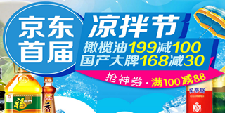 京东凉拌节,食用油促销,每天可抢100-88神券/满199-100/满168-30等!京东首届凉拌节火力全开,力度为满99-40、满199-100,国产大牌满168-30,当然,页面中还可领满168-38券,并且还能抢满100-88券哦(7.12-7.28每天可抢,今日已抢完),内有金龙鱼、福临门、鲁花,更有国外橄榄油品牌,亲们可以赶紧囤油了,赶紧去选选吧!