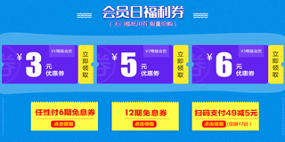苏宁易购717会员日福利,免费领取优惠券,3元/5元/6元无门槛优惠券!苏宁易购717会员福利日,目前可以提前领取3张无门槛优惠券,面额分别为3元/5元/6元,面额比较小,不过蚊子肉也是肉,赶紧领券防身(3元优惠券仅限V1等级会员,5元优惠券仅限V2会员,6元优惠券仅限V3会员)!另外还有6期、12期免息券和扫码支付满49-5元券(仅限17日)。