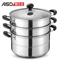 ASD爱仕达WG1526SL三层复底蒸锅,采用食品级不锈钢材质,内外经特殊工艺处理,不易发黄、坚固耐用;一锅多用,亦可用作蒸锅、汤锅、炖锅使用;可视玻璃盖,与锅身温和叠扣,密封性好,精巧美观;规格为26CM,电磁炉及明火通用。