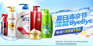 活动日期为8月22日到8月31日,优惠力度为满199-100元,潘婷、飘柔、海飞丝、沙宣等大牌均有参与活动!有需要洗护用品的朋友不妨去看一看哦!