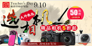 苏宁易购精品相机活动专场,全场优惠直降,还有50元优惠券。苏宁开启精品相机专场,有老教I师机,教你选相机。满场尼康、佳能、富士、索尼等等大牌相机均有参加,单反、微单、长焦、自拍神器也基本都有,还有多家精选优质店铺参与活动,活动时间为9月6号至9月10号,喜欢拍照的朋友们可以去围观一下!