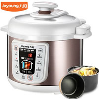 九阳JOYOUNG 电压力煲JYY-50YS83,采用电脑式操控,隶属于智能调压系列,支持5段调压技术,针对不同食材自动调节烹制压力,可在一定程度上避免食物中营养流失。晶瓷厚釜、黄金不粘双内胆结实耐用,支持液晶显示,24小时预约。可立盖,拉丝不锈钢材质,清洗起来相对轻松。5L容量比较适合3-5人使用,额定功率1000W。
