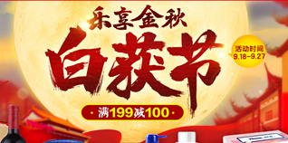 1号店白获节综合百货促销,满199-100元!1号店今日开启了一个自营白获节特卖活动,主要是综合百货类的满减特卖,包括了美容护理、国产食品、酒水饮料、厨卫清洁、母婴玩具、生鲜水果、家居生活、进口食品等在内的八大品类,力度统一为满199-100,活动时间截止到9月27日,有需要的不妨去逛逛吧。
