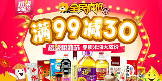 苏宁易购米面粮油专场促销活动,满99减30。苏宁易购目前开启了一个米面粮油的专场促销活动,力度为满99减30元。参与活动的产品包括大米、食用油、方便速食、厨房调料、杂粮干货等,更有福临门、金龙鱼、方家铺子、珍佰粮远山农业、溢田等品牌倾情加盟。活动还有1元和爆款必抢的专区,力度真心不错。有需要的朋友可以多多关注一下!