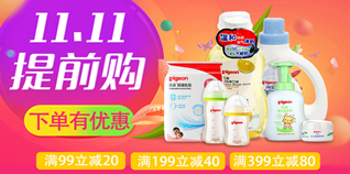 京东商城贝亲母婴用品专场促销,满99减20/199减40/399减80、可叠加满79-20!京东贝亲目前开启11.11提前购活动,购物先领券再满减,满减力度为99减20、199减40、399减80,还可领取页面下方满79减20优惠券,可做到99减40力度,页面内多款商品双重优惠后有不错的价格,需要的朋友可关注。
