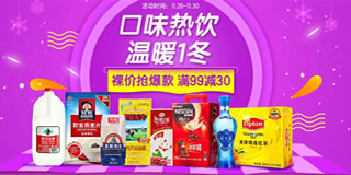 1号店口味热饮暖冬专场,裸价款,满99减30元。1号店目前开启了一个“口味热饮,温暖1冬”的主题活动,力度为满99减30元,除此之外还有买一送一、买二付一、限量裸价抢、1件包邮的优惠专区。活动产品包括冲饮咖啡牛奶、酒水饮料茶叶等,麦斯威尔、伊利、南方、西麦、雀巢、立顿等品牌均有参与。活动时间为11月26日至11月30日,大家有需要的不妨看看!