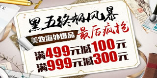 亚马逊海外美妆疯抢专场,满499减100/满999减300。亚马逊现有一个黑五大牌美妆后疯抢的促销活动,个护美妆力度为满499减100/满999减300元,力度不错,兰蔻、雅诗兰黛、资生堂、兰芝、悦木之源、娇韵诗、宝丽等各种大牌实力坐镇,彩妆、护理、清洁等产品都有,活动时间截止至11月30日23:59:59,需要的可去看看!