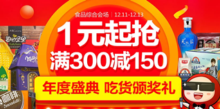1号店食品综合会场,满300-150/跨店买3免1。1号店今日开启了食品综合会场,活动力度为满300减150的活动,还有跨店买3免1的活动,休闲零食、方便速食、饮料冲调等都有参加活动,许多商品折后好价,喜欢的朋友可到页面挑选,活动日期:12.11-12.13。