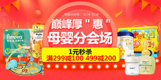 1号店厚“惠”母婴分会场,1元,满299减100,满499减200。1号店于今日开启了一个厚“惠”母婴用品的专场活动,力度为满299减100,满499减200元。活动包括聚划算专区、聚超值专区、聚惠抢专区、大牌齐聚联欢惠专区、满299减100专区等,活动时间为12月16日至12月18日,需要的朋友可前来选购!