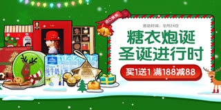 1号店糖衣炮诞圣诞进行时,买一送一,满188减88元。1号店目前开启了一个糖衣炮诞圣诞进行时的专场活动,力度为买一送一,满188减88元。活动包括糖衣炮弹专区、恋爱般甜蜜专区、休闲下午茶专区、买一送一专区、满188减88元专区,涵盖的产品有进口牛奶、休闲果干、酒水饮料、进口冲咖等,活动只限12月24日,吃货们赶紧下手吧!