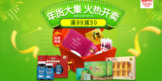 1号店自营保健年货节专场,9.9元,满99减30元。1号店目前有一个自营保健年货节的专场活动,力度为满99减30,页面还有9.9元的优惠活动。活动包括营养保健、传统滋补、维生素/钙片、成人计生、医疗器械等方面的产品,汤臣倍健、欧姆龙、昂立、恒寿堂等知名品牌均有参与,活动时间截止至2017年1月2日,作为新年礼物送老人是个不错的选择哦!