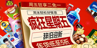 京东疯狂星期五活动专场,买2免1。又到星期五了,京东超市依旧开启了疯狂促销活动,看点就是部分商品买二免一、单品直降、年货低至5折、限量。参与活动的商品有食品饮料、母婴玩具、纸品清洁、个人护理、美妆护肤、宠物园艺等,囤点货来个葛优躺才是宅男宅女们周末的正确打开方式啊!