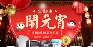国美在线生活家电闹元宵,满300减50,领券再减。国美在线目前放出来一个生活家电闹元宵的主题活动,力度为满300减50元,活动页面还有满200减10,满400减30、满800减80的优惠券可免费领取。