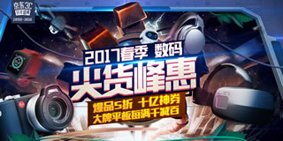 京东2017春季数码尖货峰会,爆品5折,十亿神券,大牌平板满千减百!京东目前有一个2017春季数码尖货峰会的活动,爆品好货5折抢,16-800元指定商品优惠券领取,大牌平板满千减百。