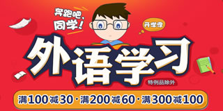 当当网外语学习活动专场,满100减30、满200减60、满300减100。当当网目前有一个外语学习的专场促销活动,力度为满100减30、满200减60、满300减100元。活动包括英语考试(四六级、雅思托福专四、专八等)、英语读物、专项训练、其他语言、工具书等方面的书籍,书目还是比较齐全的,有需要的不妨关注一下!