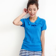 AMPM女领口系带短袖毛衣615504,多色可选,邦购网团购25元包邮。同款毛衣,天猫、淘宝含邮费均在35元左右。