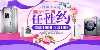 苏宁易购魅力三月冰洗专场,每满1000立减100。苏宁易购目前开启了一个魅力三月冰箱洗衣机的专场促销活动,力度为每满1000立减100元,页面还有6/12期的免息券领取。