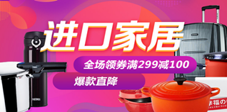 京东商城全球购日用家居专场促销,领299-100优惠券!某东全球购目前推出进口日用家居专场活动,可领取满299元减100元优惠券;领券时间分为4个时间段,分别为:9点,12点,16点,20点。