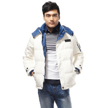 雅鹿冬季短款男士羽绒服,撞色拼接,合体服帖,可脱卸帽子设计,随性自由,动感十足,防风袖设计,可调节大小,车线工艺不错,无可挑剔的线迹,90%灰鸭绒填充,时尚更保暖。