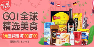 1号店全球精选美食活动,1元尝鲜/满199-100。1号店现开启全球精选美食专场促销活动,活动不仅有1元尝鲜购,还有满199减100元的优惠。参与活动的品牌有家乐氏、瑞士莲、皇冠等,参与活动的品类有饼干糖巧、酒水饮料、营养冲咖等~都是全区精选美食,活动时间截止至3月19日,吃货们赶紧来围观吧!