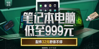 1号店电脑促销会场,笔记本电脑低至999元,配件32元不停!1号店目前有一个电脑的专场促销活动,笔记本电脑低至999元,电脑配件32元起,戴尔笔记本4999元抢,惠普每满千减百等。笔记本电脑、外设产品、网络设备、办公用品等都有,活动截止时间为3月22日,感兴趣的朋友不妨戳进来看看!