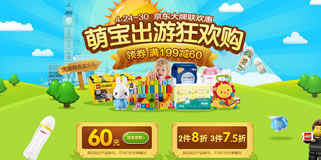 京东萌宝出游大牌联欢惠,满199-60/2件8折/3件7.5折。京东近日开启了一场萌宝出游大牌联欢惠活动,力度为2件8折,3件7.5折,另外满199元领券可减60元。