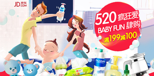 京东商城母婴用品520疯狂购,满199减100!某东目前就有“520疯狂爱,BABY FUN肆购”母婴用品促销活动,力度为满199减100,另外活动页面还可领取满299减50优惠券,部分商品可叠加使用。