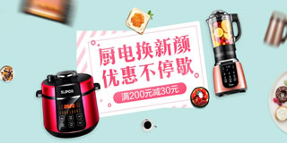 国美厨电焕新颜平台家电,满200-30元。国美在线现有一场平台家电促销专场,场内满200-30元的优惠力度。