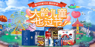 1号店大龄儿童也过节食品专场,满199-100/限时。1号店目前正开展一场食品促销专场,场内满199-100元的力度,另外更有限量低价抢和限时专区。