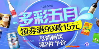 1号店多彩五月尽情畅饮,满99减15元/第二件半价!5月22日~5月26日,1号店现开启了多彩五月尽享畅饮的各类饮品促销活动,喜欢喝奶、喝茶、喝果汁、喝咖啡的喝货们注意了,好价可屯啊!此次活动可先领券再购物,满99减15的优惠券,每天限量10000张,早一点就能领到。