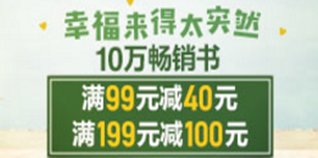 亚马逊10万畅销好书,满199-100/满99-40!目前亚马逊中国有10万畅销好书限时特惠活动,订单满199立减100元、满99-40(活动页面上方或是商品价格下方均可领取优惠券),活动截止日期为6月4日。