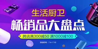 国美在线家电厨卫狂欢趴,跨店满300减50、满1000减100元!国美在线目前开启了一场生活厨卫畅销品大盘点活动,优惠力度为跨店满300减50、满1000减100元!