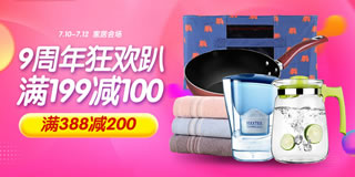 1号店9周年狂欢趴家居会场,满199-100/388-200/1件包邮。1号店昨日开启了一个家居促销专场,场内满199-100和388-200元,更有1件包邮活动专区。