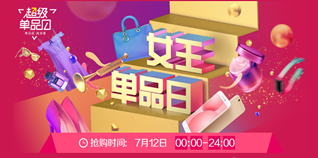京东商城服饰鞋包/个护美妆/珠宝首饰活动专场,满30-20/199-40/399-100多档优惠券!某东现有“女王超级单品日”促销活动,活动时间:7.12日0点-24点,全场精选了女士T恤、连衣裙、半身裙、鞋品、内衣、珠宝首饰、个护美妆、箱包腕表等多品类好物,且每个品类均有不同的力度促销会场。