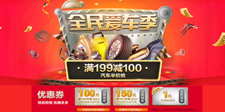 京东商城全民爱车季自营车品促销,满199-100/300-150!今天某东推出了全民爱车季,爆款日活动,本次活动设计的品类有汽车配件、车载电器、汽车装饰、美容清洁、机油和轮胎。