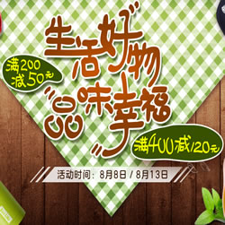 京东厨房家居生活好物专场,满200-50/400-120元。京东8月8日开启一个自营厨房家居优惠专场,场内满200-50元和满400-120元。