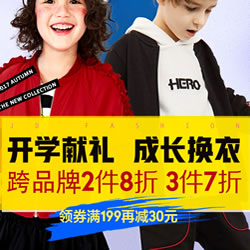 京东开学献礼童装童鞋专题活动,跨品牌2件8折/3件7折/满199-30券。京东现有个童装童鞋促销活动,全场跨品牌2件8折,3件7折,领券再享满199-30元。