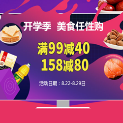 当当网自营休闲零食专场,满99-40/158-80!目前当当商城有个开学季美食任性购活动,包含休闲零食,坚果炒货,饼干糕点等品类参加,满99-40元和满158元-80元,可根据需要自由搭配,建议凑单至158元。立减80元,等于半价优惠,折后好价多多,活动时间:2017.8.22-2017.8.29