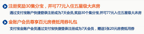 ,使用支付宝账号登录,您就可以免费获得5张价值20元的7天连锁酒店的优惠券了。注意,必须是支付宝金账户才可以,如果你有过几次淘宝,天猫购物的话,一般你就就是金账户了。