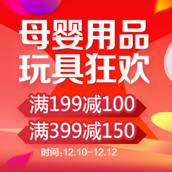 京东双12母婴用品促销专场,满199-100/399-150。京东昨日开启了一场母婴用品促销活动,全场满199-100、399-150元的优惠力度。