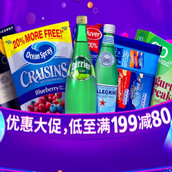 京东全球购水饮大促,低至199-80!京东全球购目前开启了一场水饮大促活动,活动的优惠力度为满199减80元!