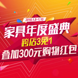 京东商城家具年度盛典,跨店3免1、叠加300元购物红包!京东商城目前开启了家具年度盛典促销活动,优惠力度为跨店3免1,还可叠加300元购物红包!