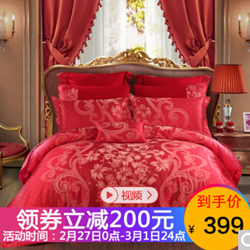 水星家纺婚庆大提花四件套百合热恋1.8米床,原价599元,京东目前可领200元优惠券,券后价399元包邮。价格比较优惠,有需要的朋友不妨来看看哦!