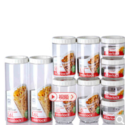 LOCK&LOCK乐扣乐扣冰箱侧门塑料收纳罐十件套INL301S902,容器和容器之间的简单贴合的乐扣乐扣专有的锁扣系统;旋转方式拧开设计掉在地上也不用担心;实用的层叠构造方式,展示便于厨房整理的卓越的空间利用。