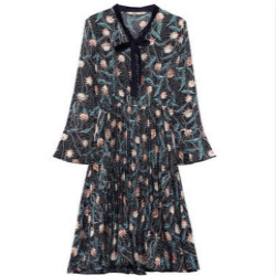 森宿新款文艺印花蝴蝶结百褶收腰长袖连衣裙,日常参考价169元,现清仓直降70.1元入手仅需98.9元包邮,超值可入!