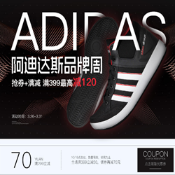 国美在线阿迪达斯品牌周,满399高减120!活动时间3月26日—3月31日,设有Adidas装备专区、Adidas三叶草专区、AdidasNEO专区、AdidasKIDS专区,有鞋类、服饰等多款好货。